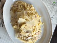 sos parmezanowy, mozarella, mortadella, oliwa truflowa, pomidor koktajlowy, pistacje